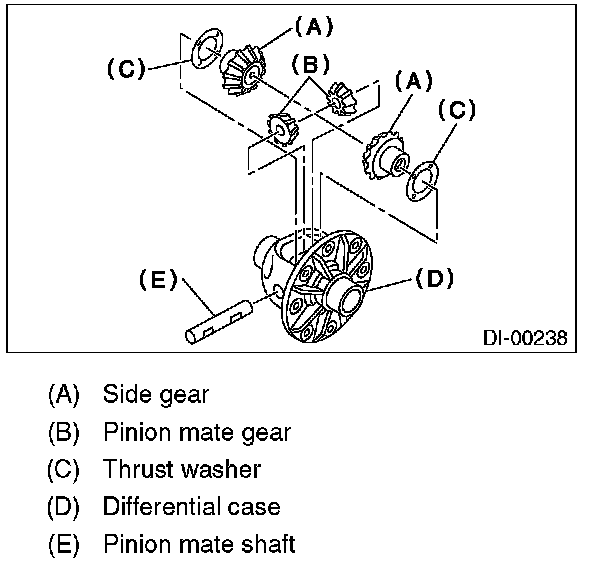 11) Draw out the pinion mate shaft and remove pinion mate gears, side gears and thrust washers.
