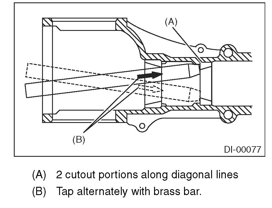 18) When replacing the bearings, use a brass bar to tap out the front bearing cup and rear bearing cup (in this order).