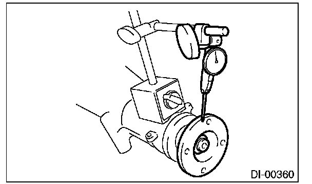 2) Set a dial gauge at a companion flange surface (mating surface of propeller shaft and companion flange), and then measure the companion flange runout.