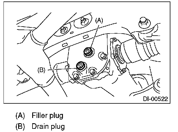 ^ Be careful not to spill the differential gear oil on exhaust pipe. If gear oil is spilled, wipe it off completely.