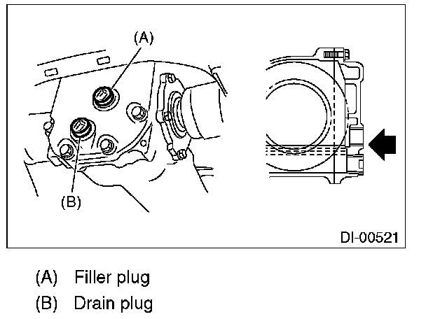 4) Fill the differential carrier with gear oil to the bottom of filler plug.