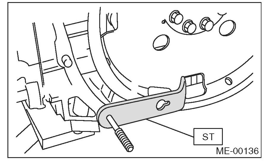 1) Using the ST, lock the crankshaft.