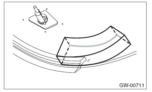 8. Remove the backing sheet of the sticker, and apply the seal based on the positions of the silver print (3) and (4) of the rear gate glass (passenger room side).