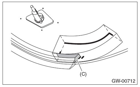 4. Clean the rear gate glass (passenger room side) molding adhesive surface (A), and apply primer.