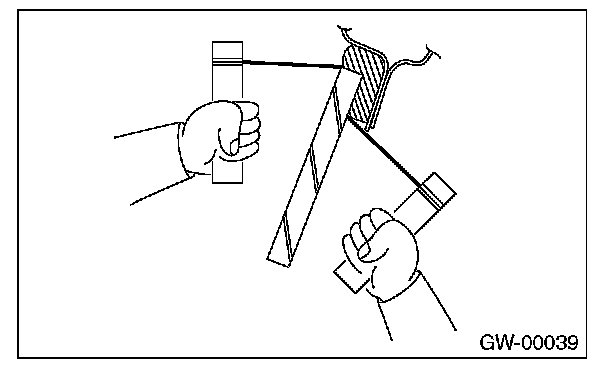 CAUTION: Apply protective tape, etc, and be careful that the inner and outer components of the vehicle are not damaged.