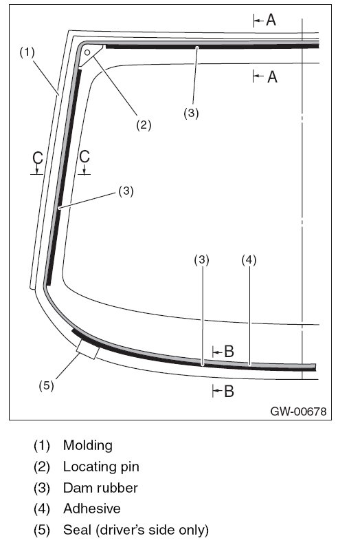 - For minimum drying time and vehicle standing time before driving after bonding, follow instructions or instruction manual from the adhesive manufacturer.