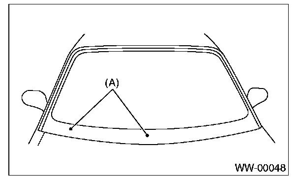 to ceramic print point mark (A) of front window panel.
