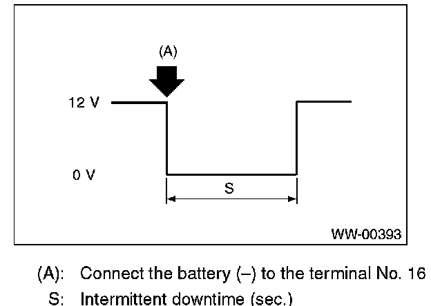 5. Connect the battery (-) to the terminal No. 16, and check the voltage between terminal No. 7 - No. 2 when performing the intermittent operation.