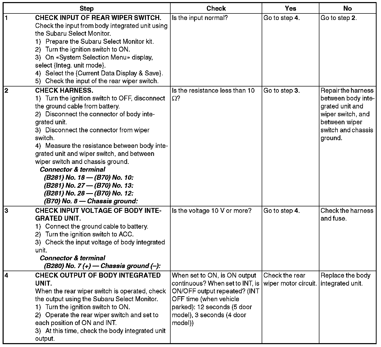 1. Check with Subaru Select Monitor When the front wiper switch is operated, check the input signal using the Subaru Select Monitor.