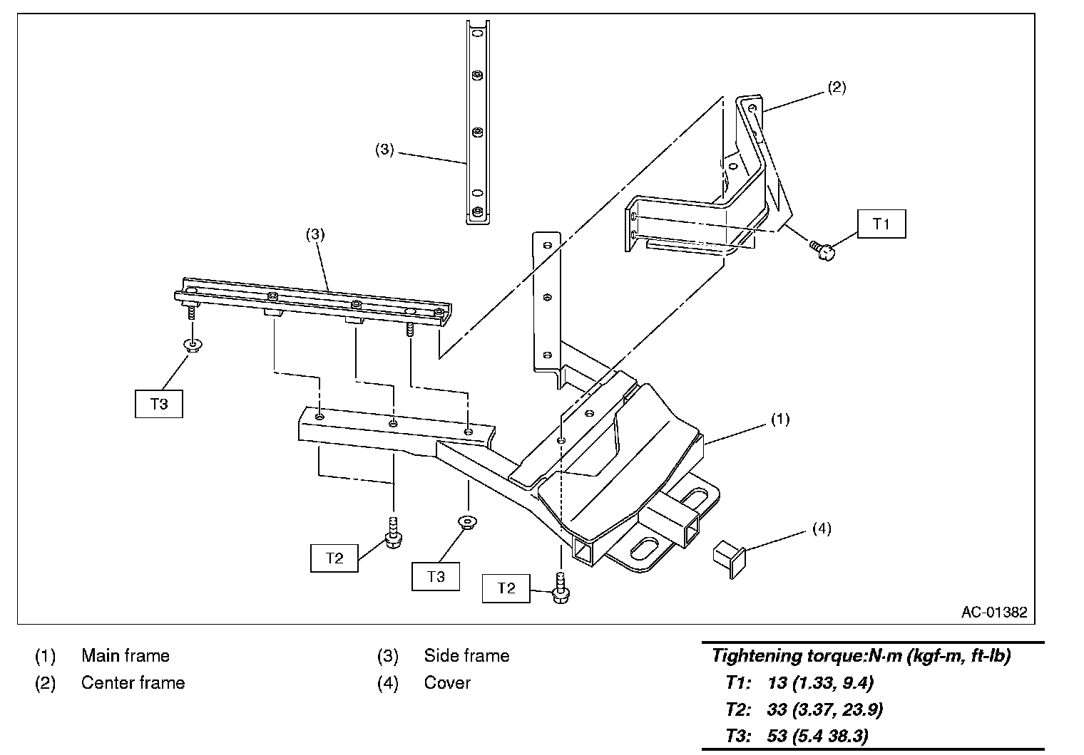 3. Remove the bolts, and then remove the center frame.