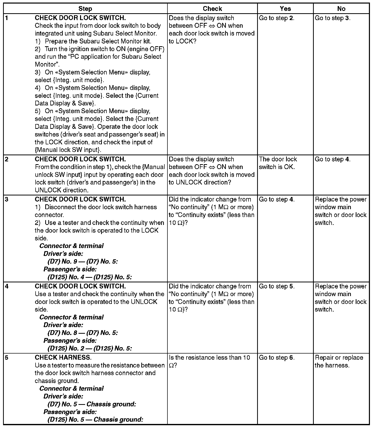 CHECK DOOR LOCK SWITCH