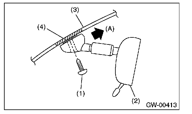 2. Slide the rearview mirror (2) to the upper side (A) of windshield glass (3), and remove the mirror from mount (4).