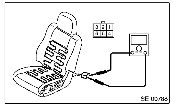 Disconnect the connector of the seat heater module, and check for continuity between terminals in connector.