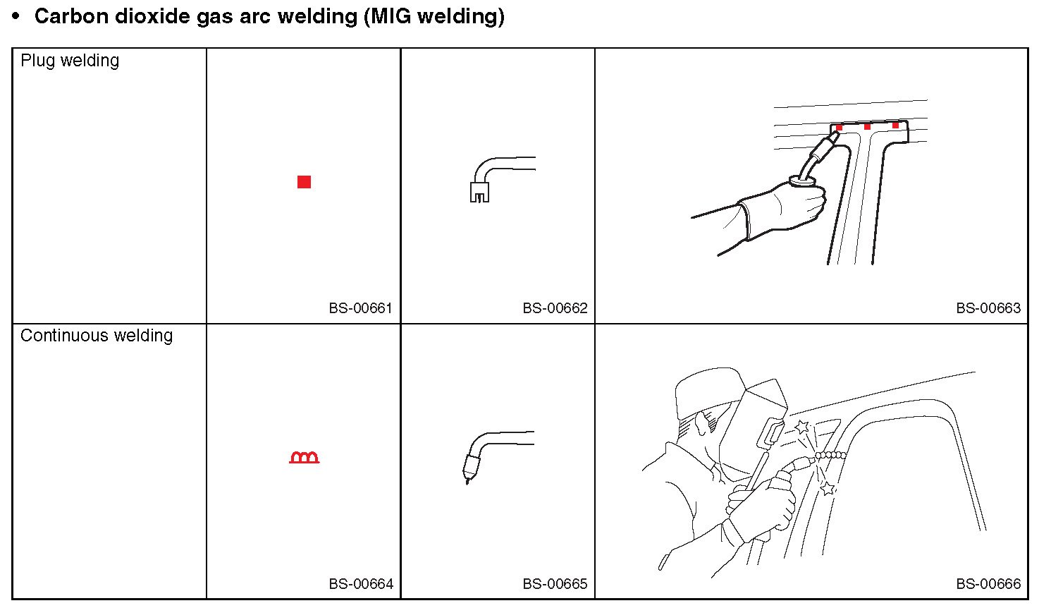 - Always apply anticorrosion wax to the welding locations when replacing panels.