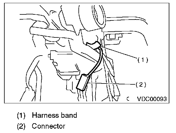 7) Unlock the harness band and disconnect the connector of the steering angle sensor.