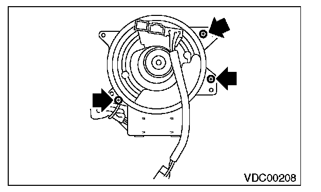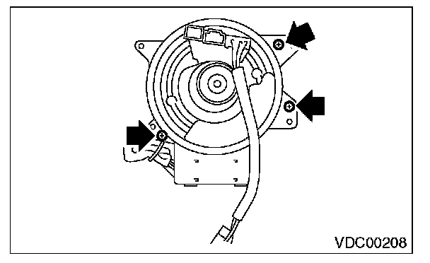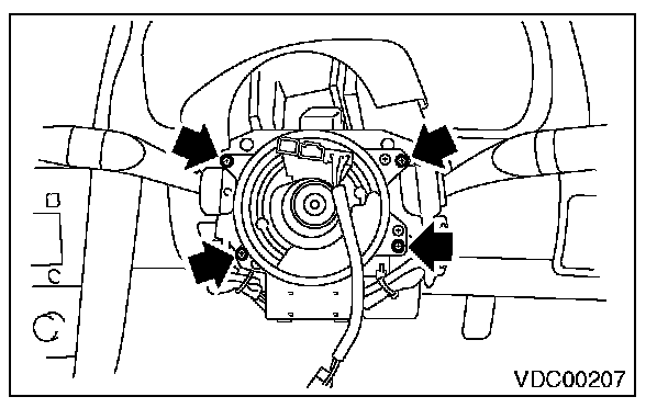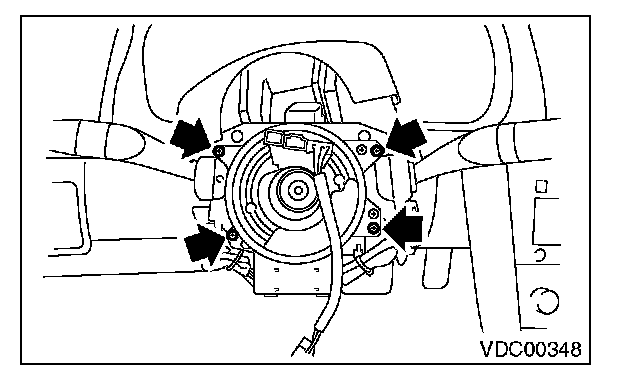8) Remove the screws which secure the roll connector to steering column.