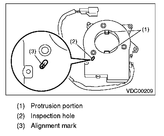 10) Turn the protrusion portion of new steering angle sensor to match the alignment mark of inspection hole.