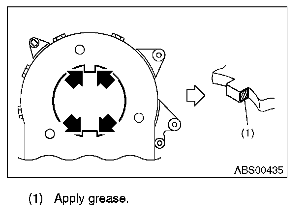 12) Apply a thin coat of grease that is supplied with the new part, to the 4 protruding sections of the steering angle sensor.