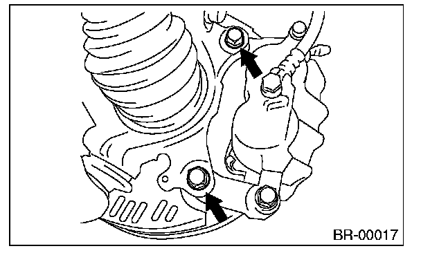 2) Remove the caliper body and the support from housing, and suspend it from the strut using a wire.