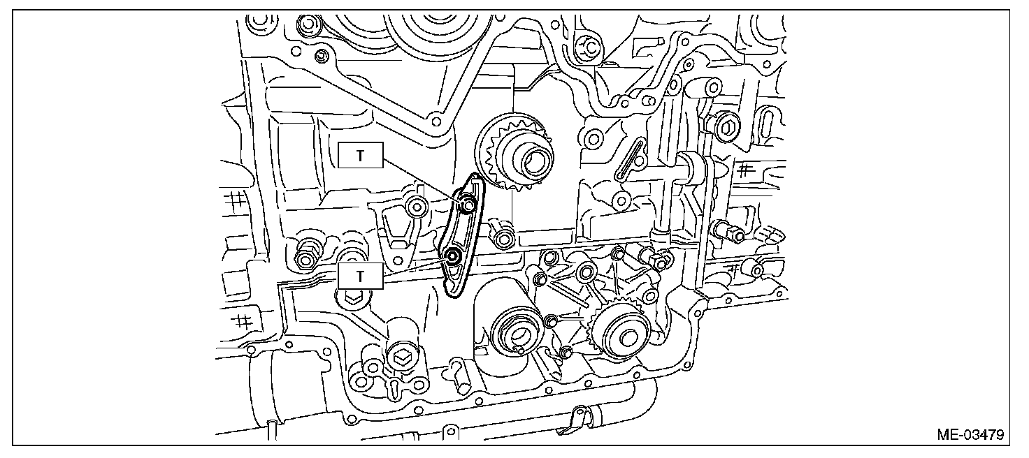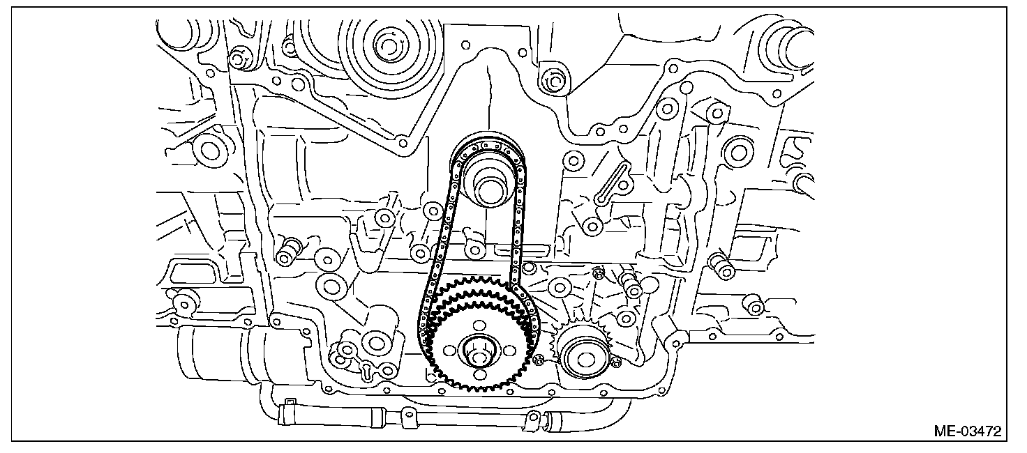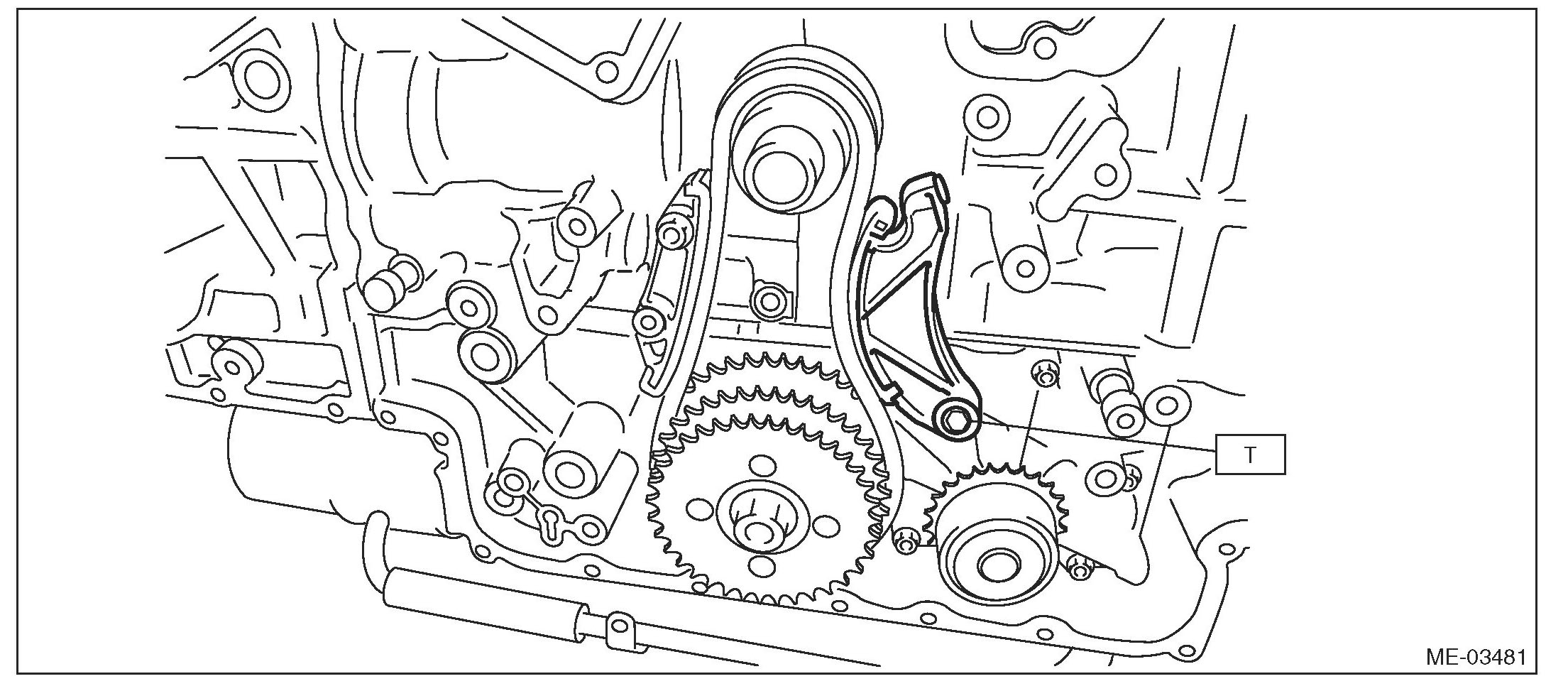 19) Remove the idler sprocket, and then remove the idler sprocket and timing chain (main).
