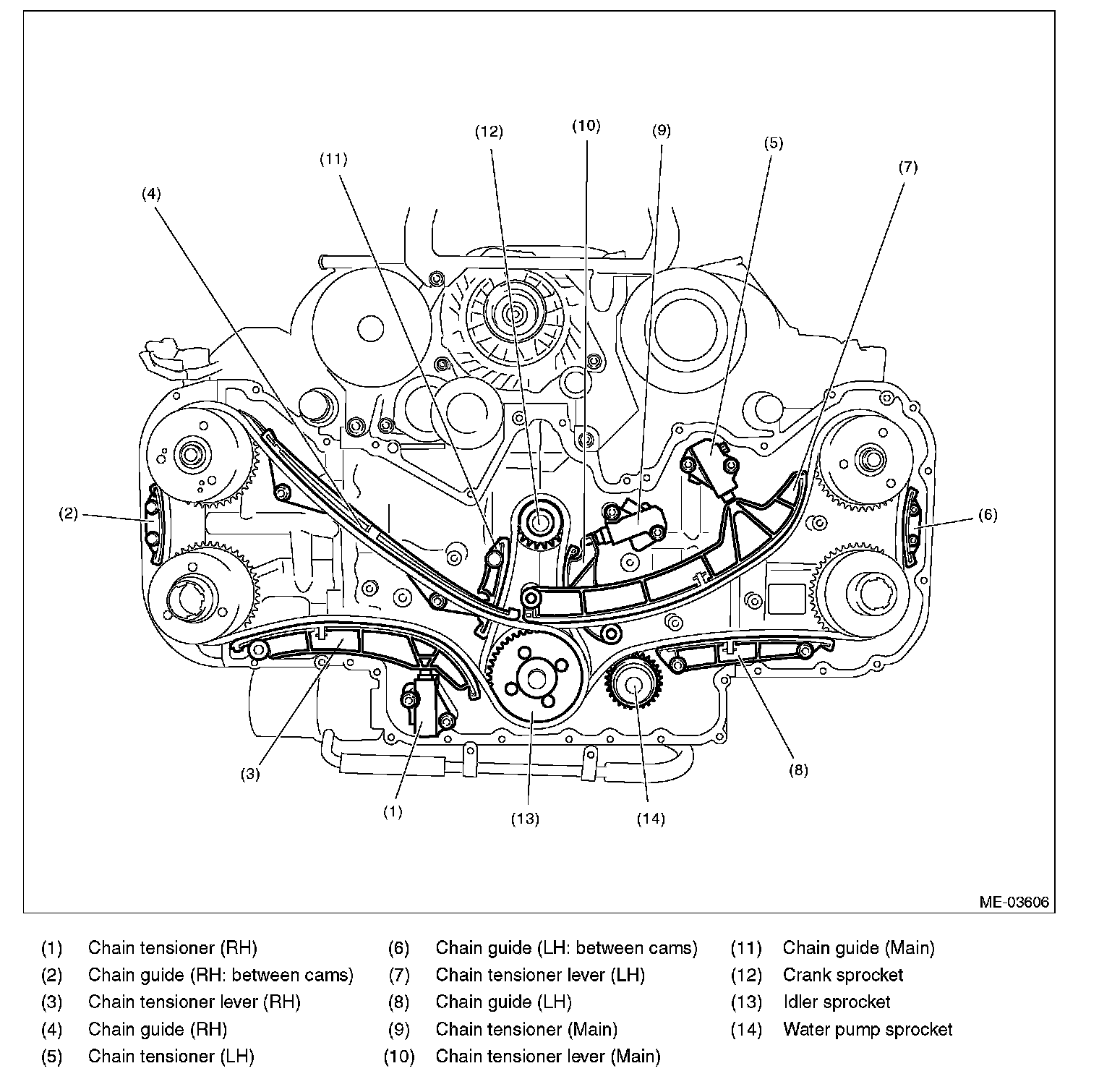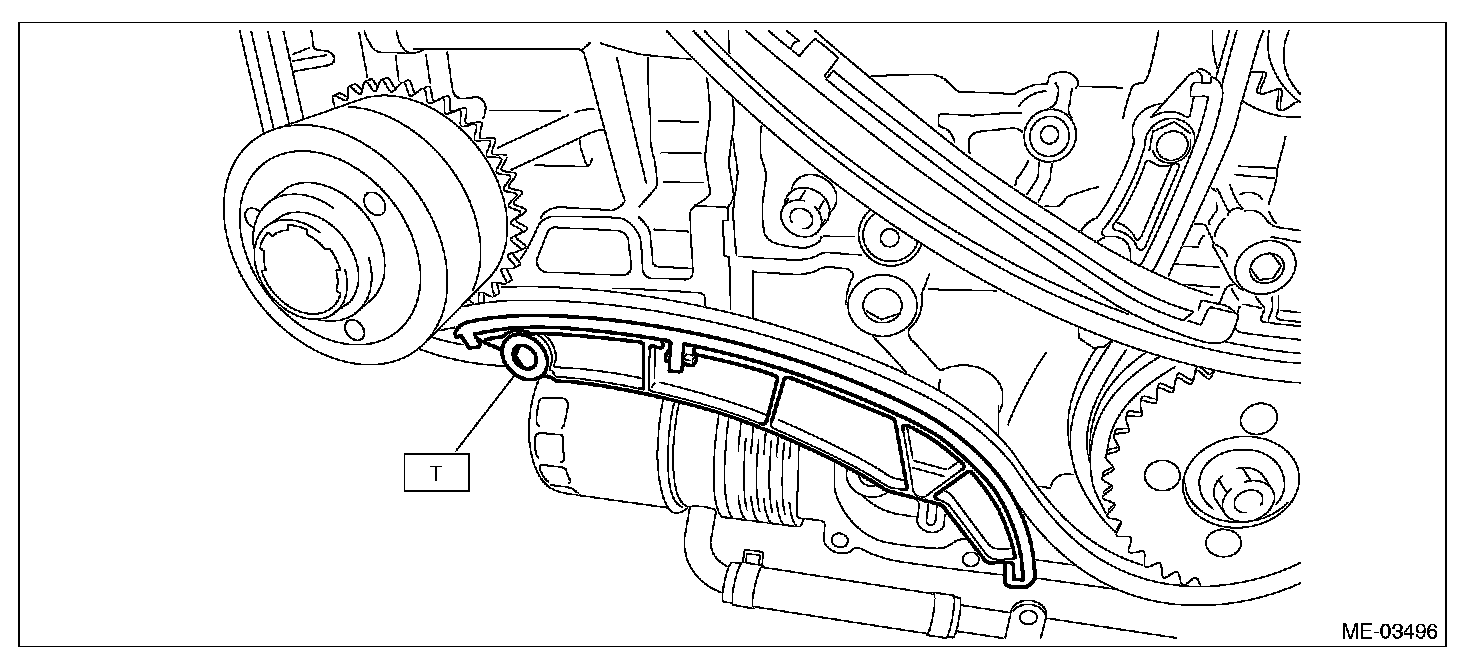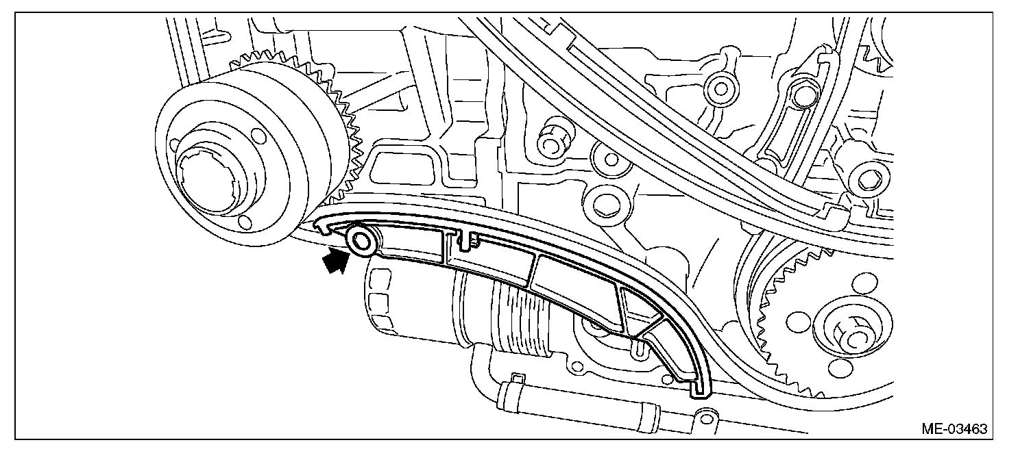 19) Remove the idler sprocket, and then remove the idler sprocket and timing chain (main).
