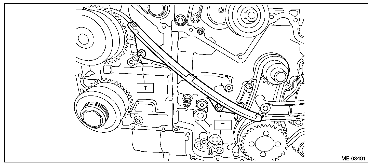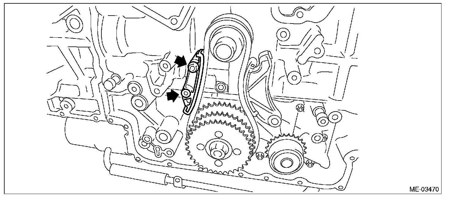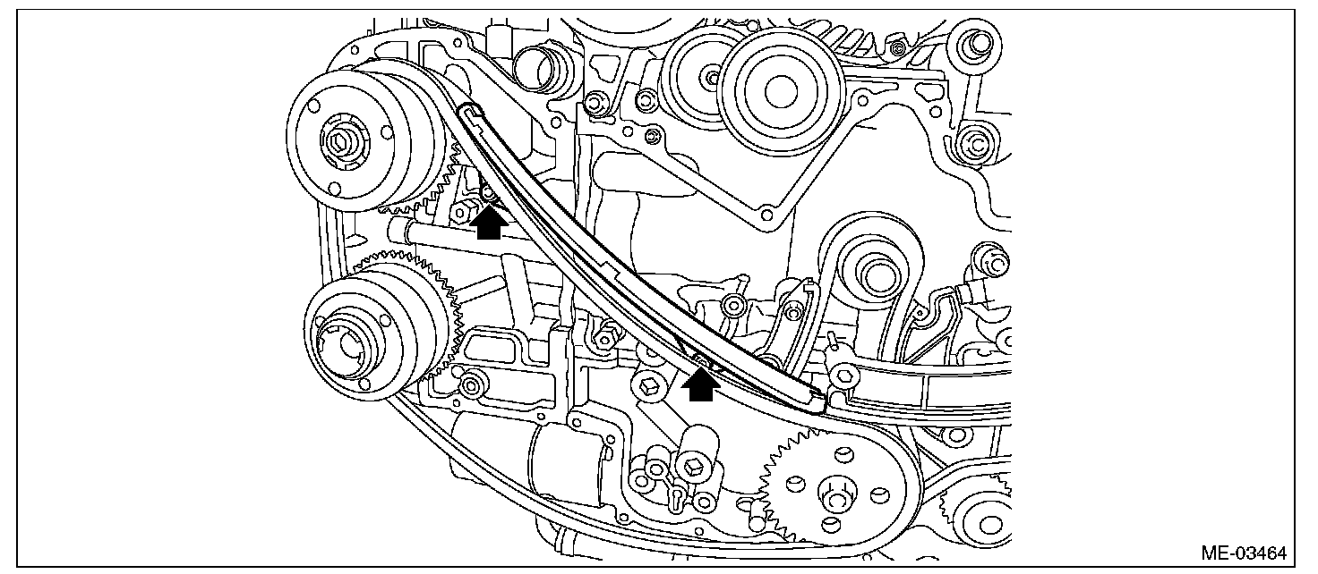 To avoid mixing the timing chain component parts, separate each part after their removal.