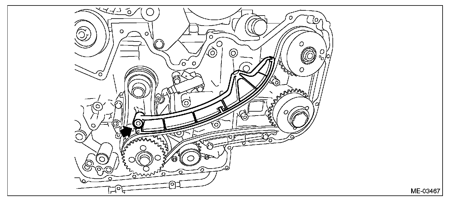 15) Install the chain tensioner (LH) and pull out the stopper pin.