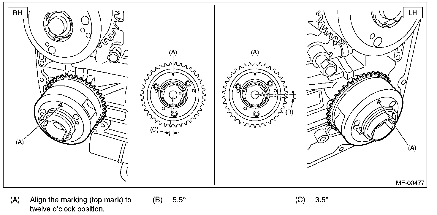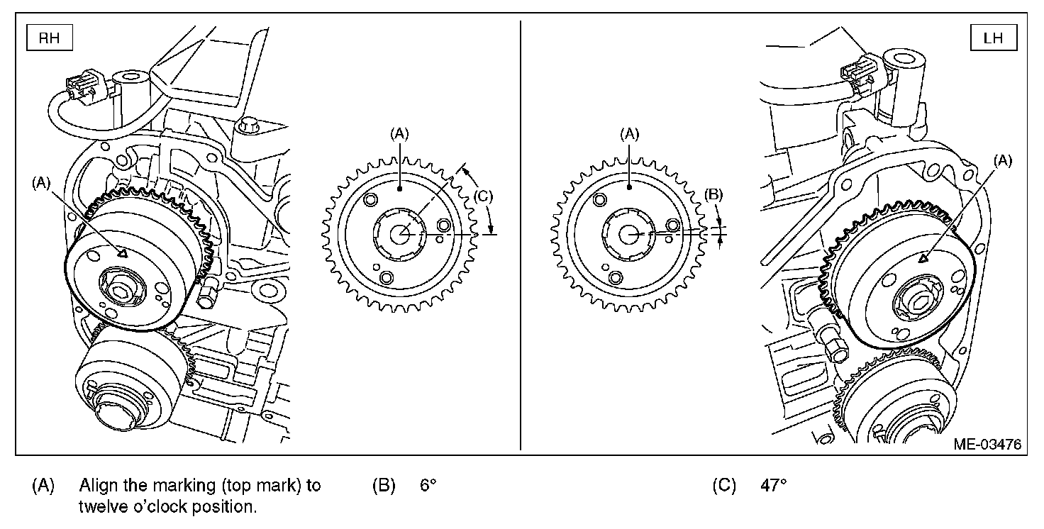 4) Align the intake cam sprocket to twelve o'clock position as shown in the figure.