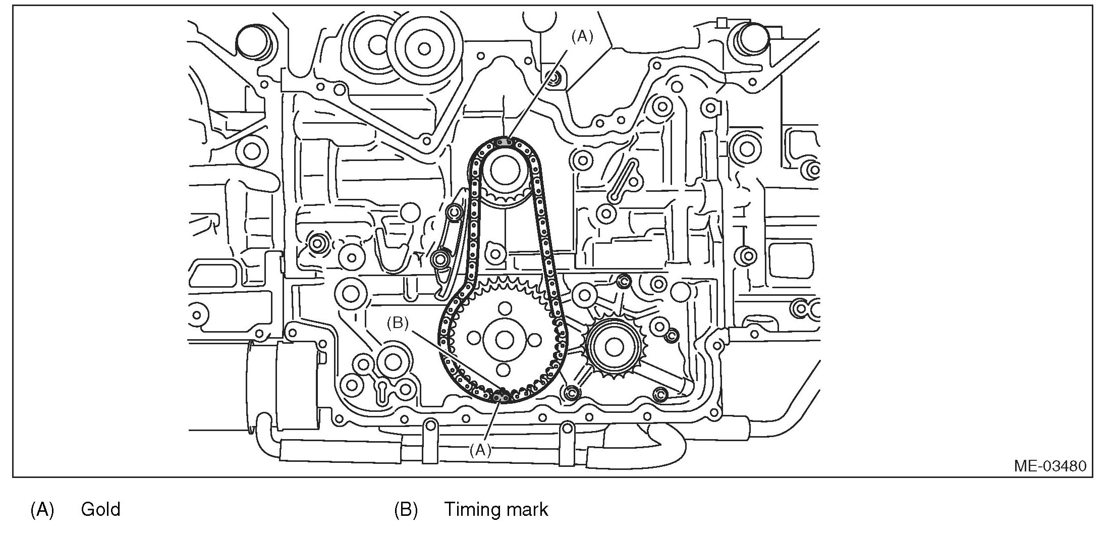 (1) Match the timing chain mark (gold) to the timing mark position of the idler sprocket.