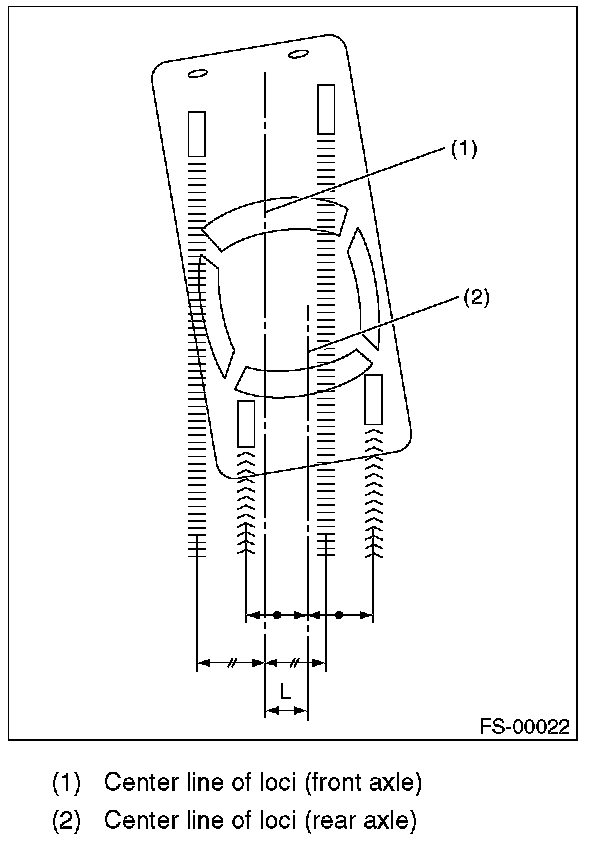 2) When one rear wheel is adjusted in a toe-in direction, adjust the other rear wheel equally in toe-out direction, in order to make the thrust angle adjustment.