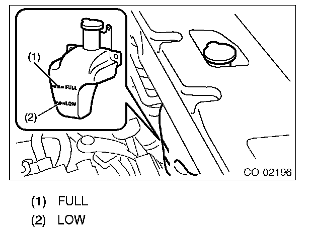 8) Fill engine coolant into the reservoir tank up to "FULL" level.