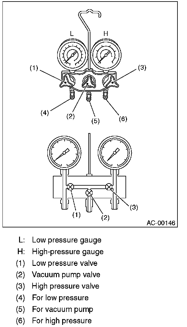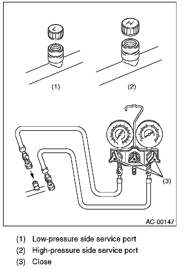 3. Make sure the valves on low-/high-pressure sides of manifold gauge set are fully closed.