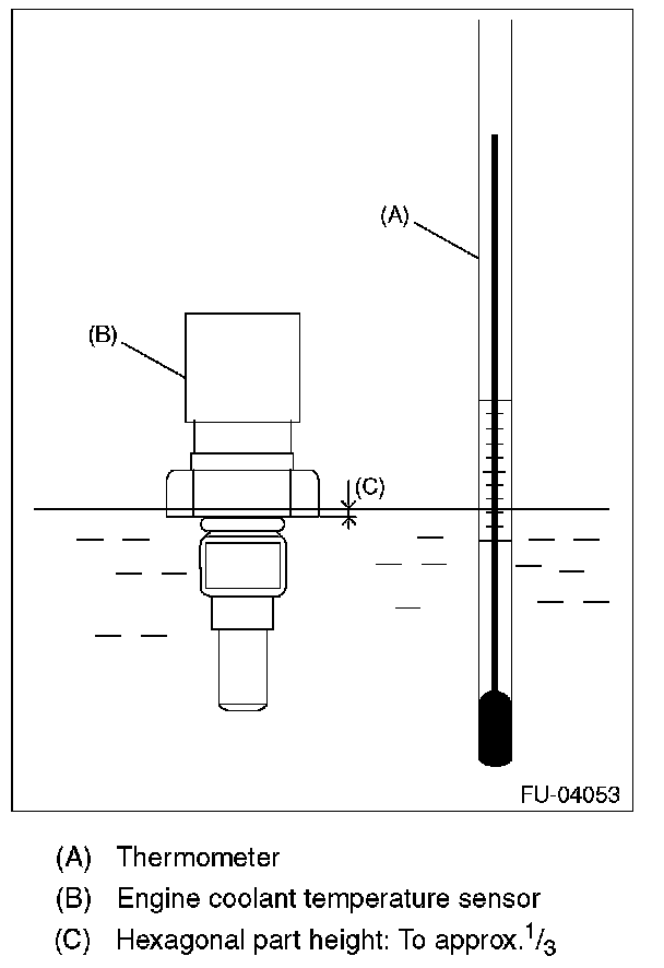 2. Immerse the engine coolant temperature sensor and a thermometer in water.