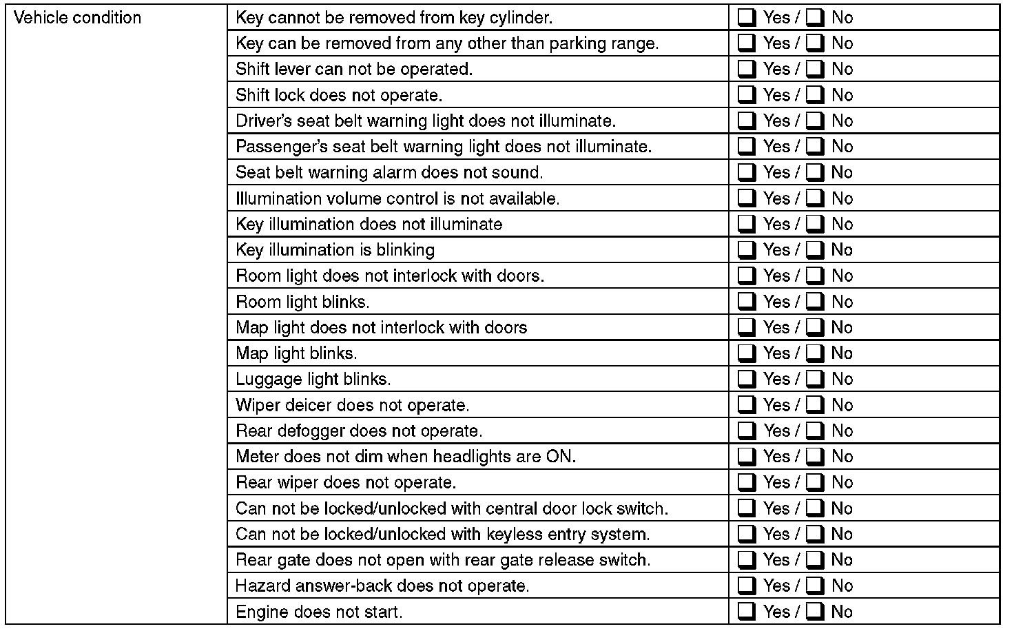 Inspect the following item about the vehicle's state.