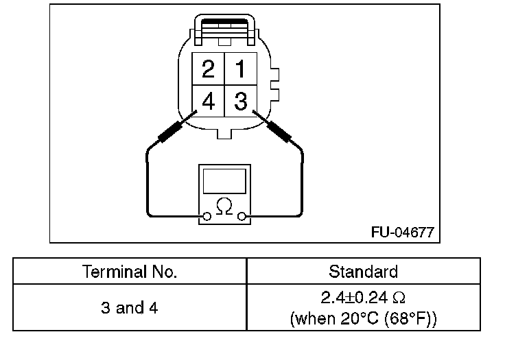 Measure the resistance between front oxygen (A/F) sensor terminals.
