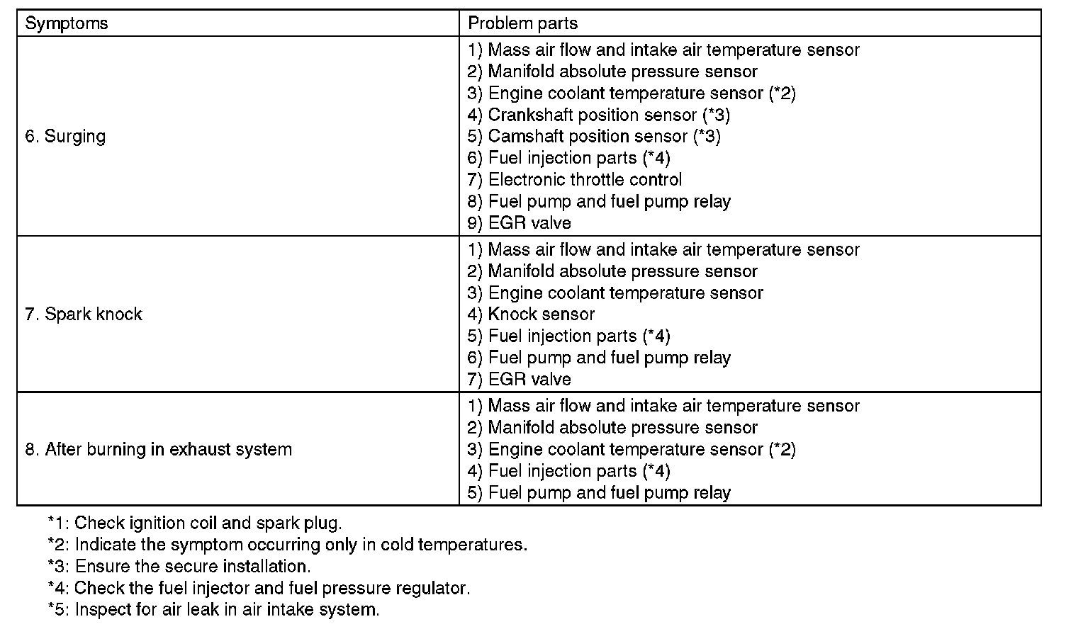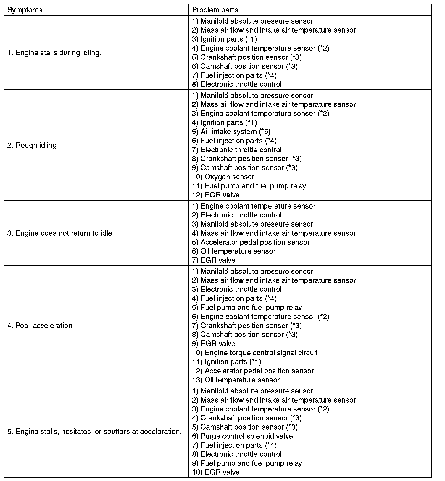 Malfunction of parts other than those listed is also possible. Refer to Engine Trouble in General.