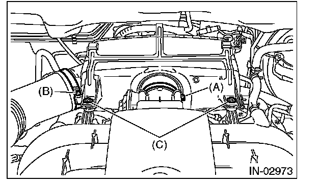 4. Remove the bolt (C) which secures air intake chamber and collector cover bracket to the stay.