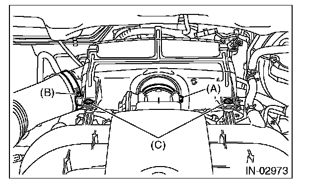 3. Loosen the clamp (B) which connects intake boot to air intake chamber.