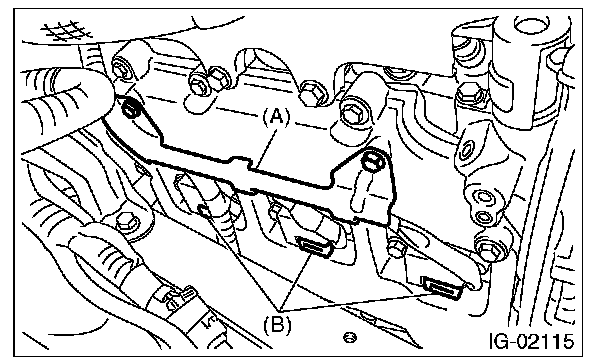 4. Disconnect the connector (B) from ignition coil.