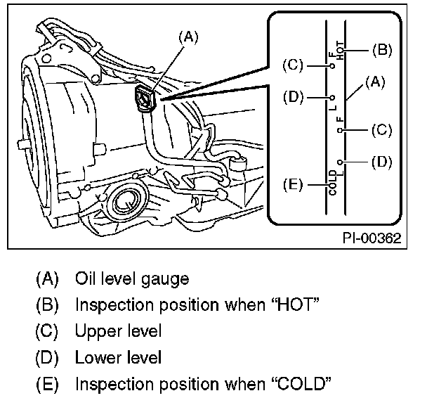 Make sure that ATF level is the specified amount. A/T Fluid Inspection