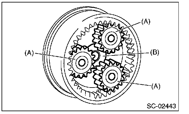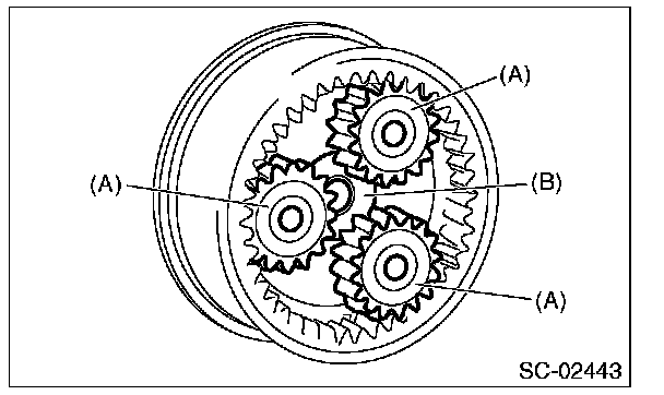 8. Remove the planetary gear (A) and washer (B) from internal gear.