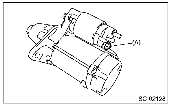 1. Remove the nut which holds terminal M (A) of the magnet switch assembly, then disconnect the harness from the terminal.