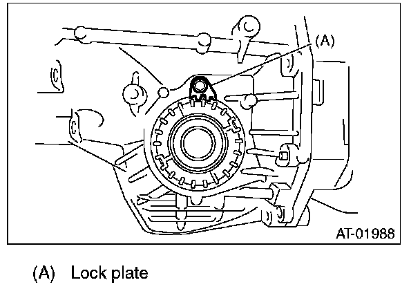7) After the "zero" state is established, loosen the retainer LH by 3 notches and secure it with the lock plate. Then loosen the retainer RH and retighten until it stops. Rotate the drive pinion 2 or 3 times. Tighten the retainer RH further 1-3/4 notches. This sets the preload. Finally, secure the retainer with its lock plate.