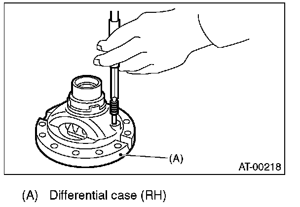 1) Install the washer, differential bevel gear and differential bevel pinion in the differential case (RH). Insert the pinion shaft.