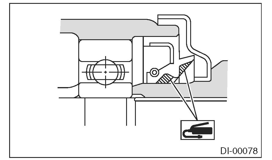^ Apply differential gear oil to the lips when installing the oil seal.