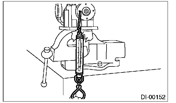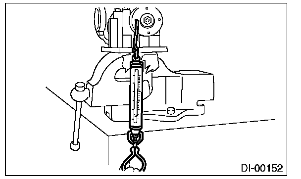 (7) Turn the ST1 by hand to smooth the bearing, and tighten the self-locking nut while measuring the initial load or initial torque with a spring scale or torque wrench. Select the preload adjusting washer and spacer so that the specified preload is obtained when nut is tightened to the specified torque.