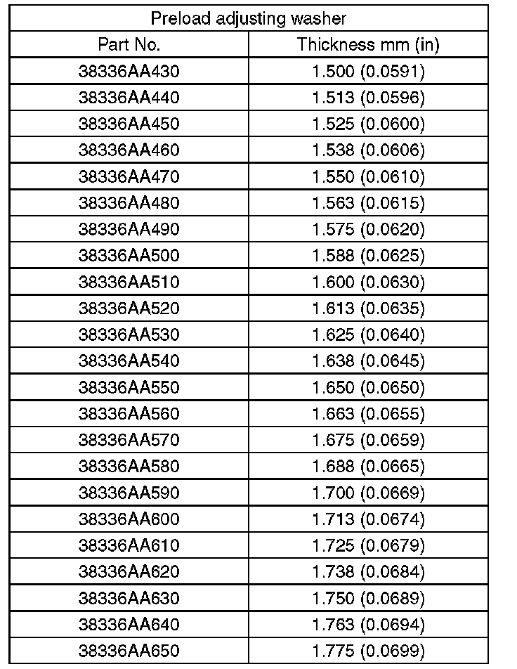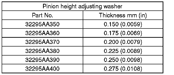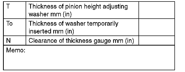 (4) Obtain the thickness of pinion height adjusting washer to be inserted from the following formula, and replace the temporarily installed washer with this one.