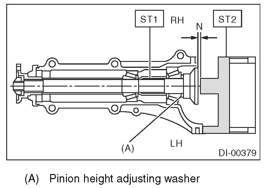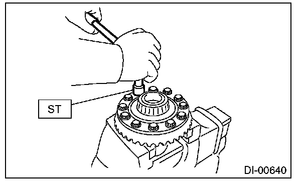 (1) Turn the drive pinion with ST for better fitting of differential side bearing.