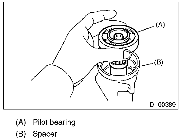6) Insert the spacer, then install the pilot bearing.