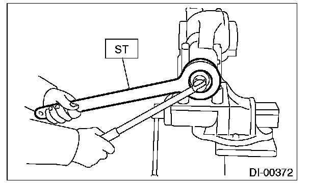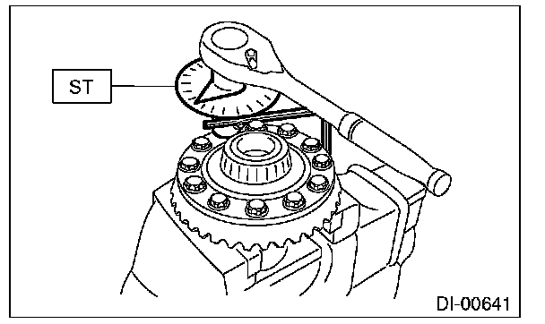 (1) Tighten the hypoid driven gear mounting bolts to the specified torque using the ST.